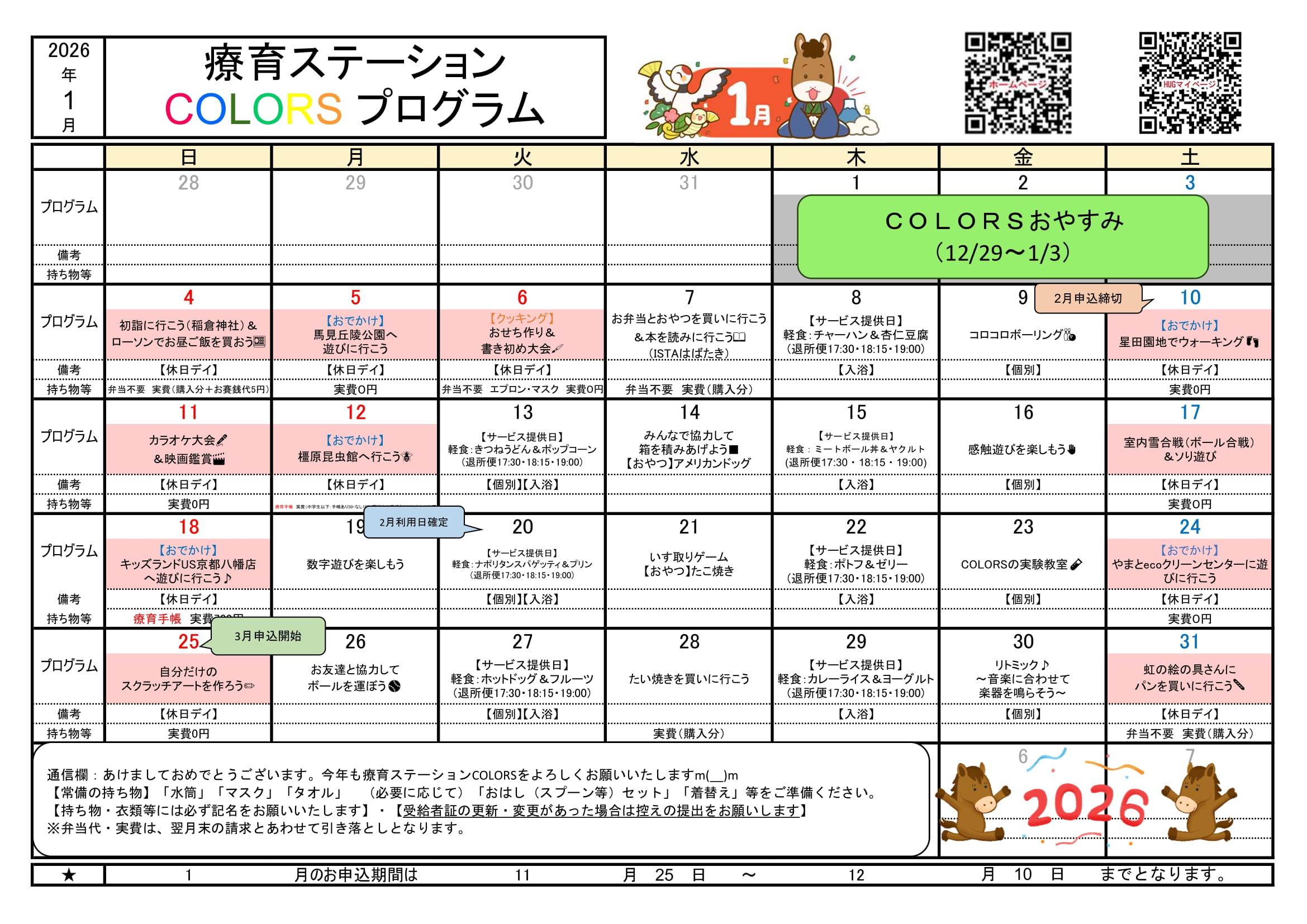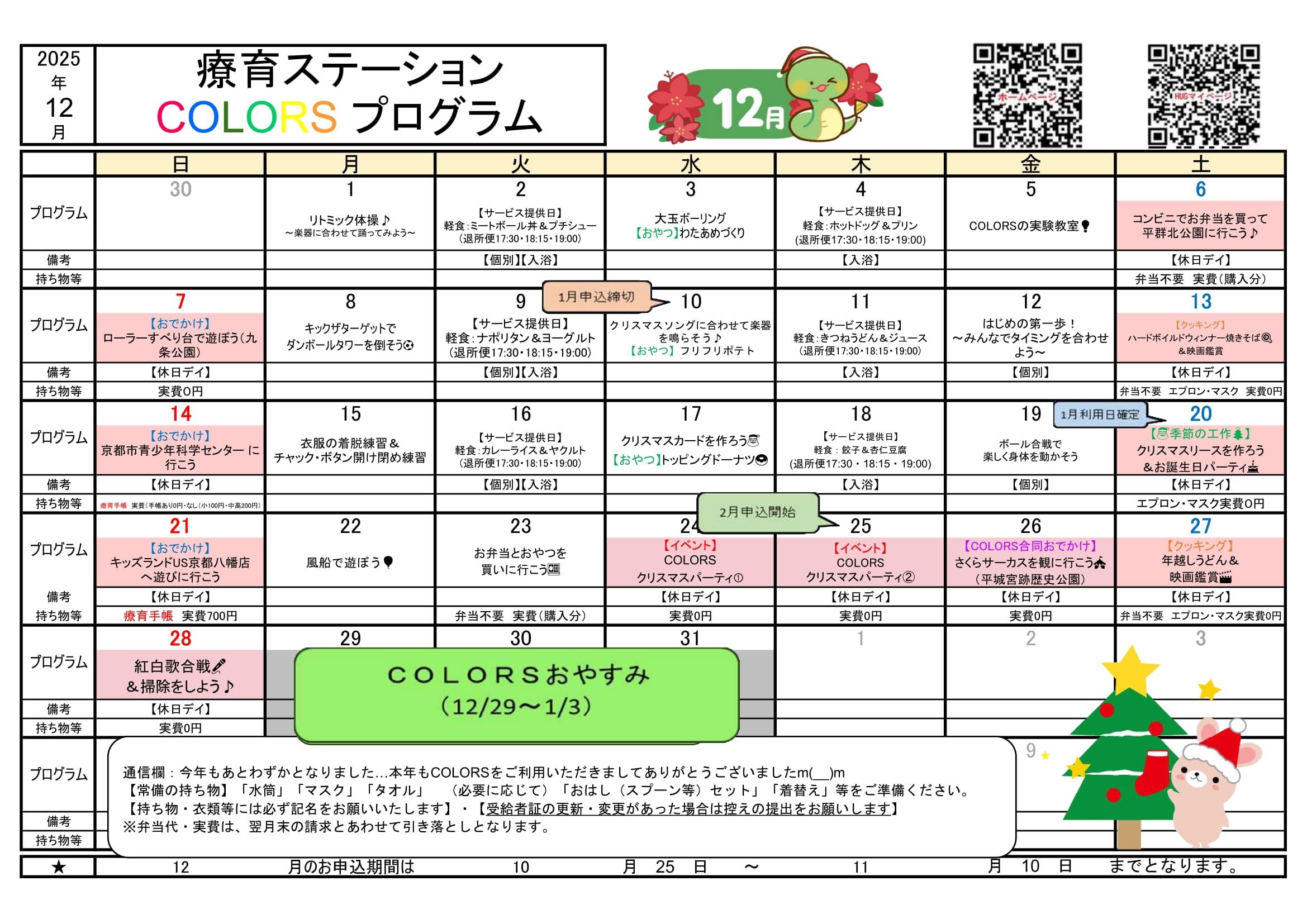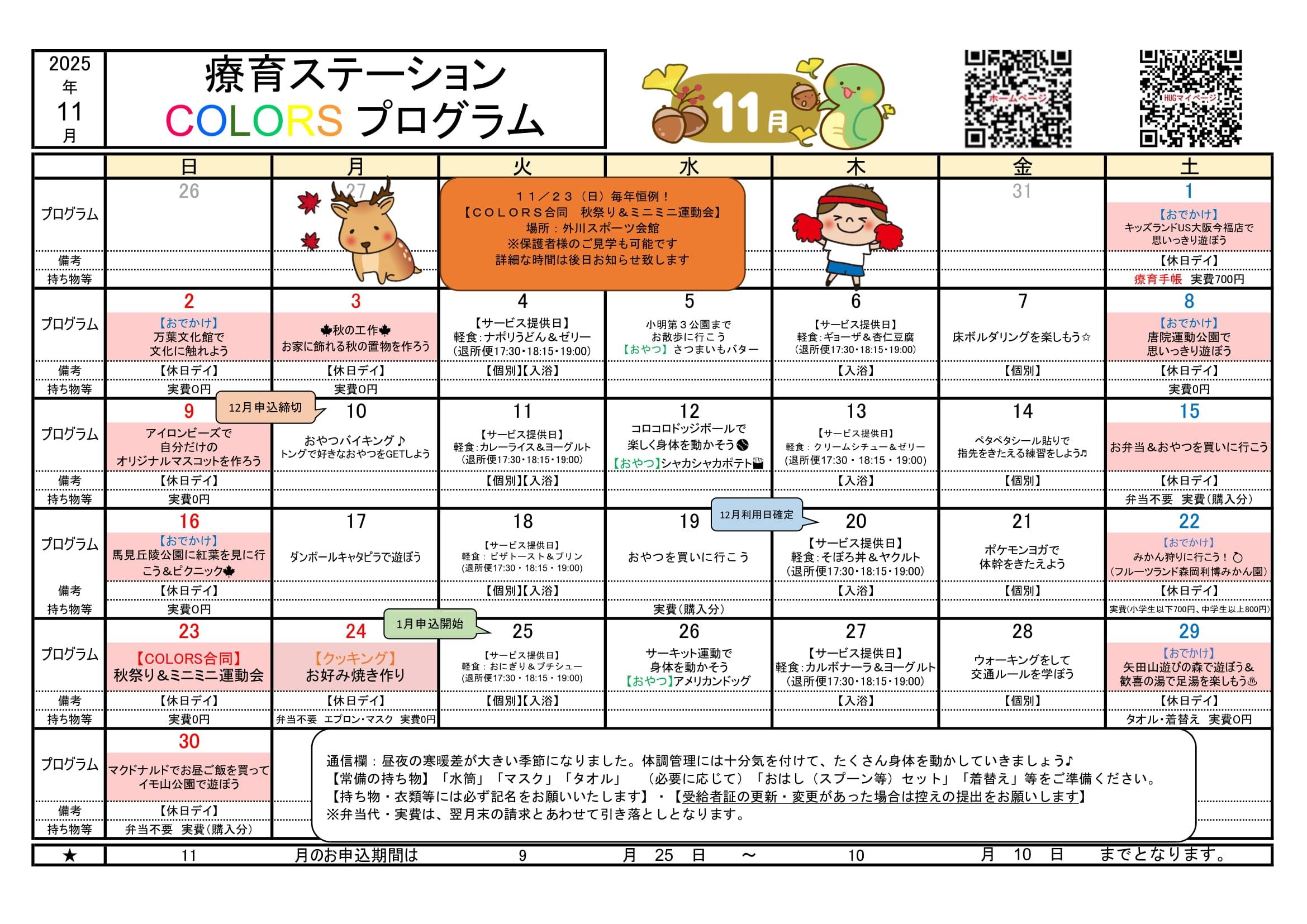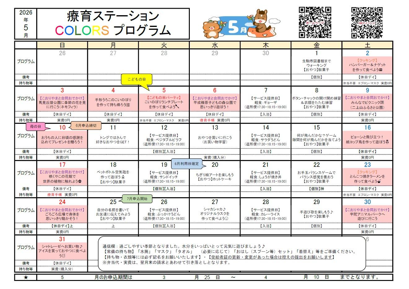 プログラム 集団や個人で楽しめる様々なプログラムを日替わりでおこなっています♪ |