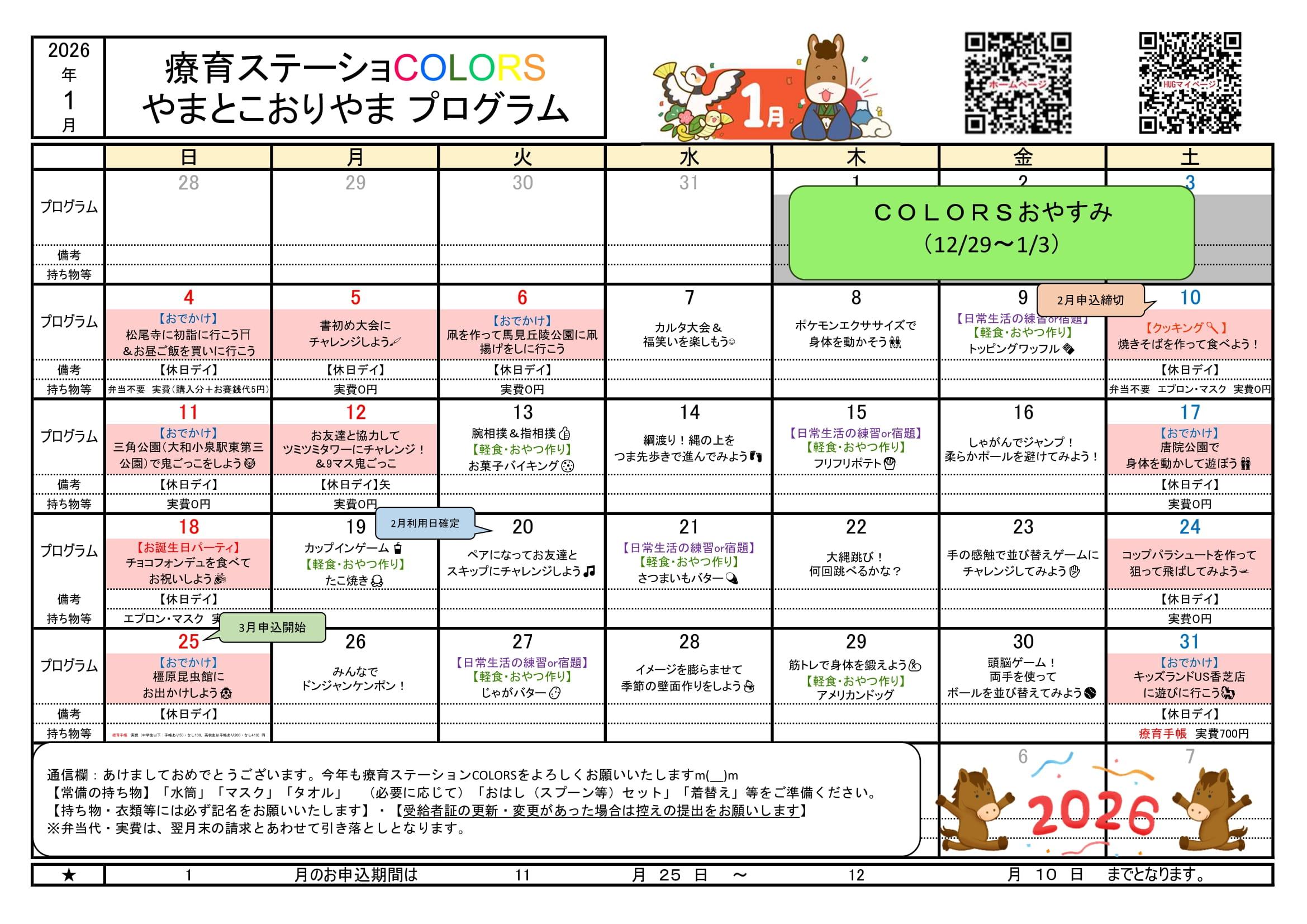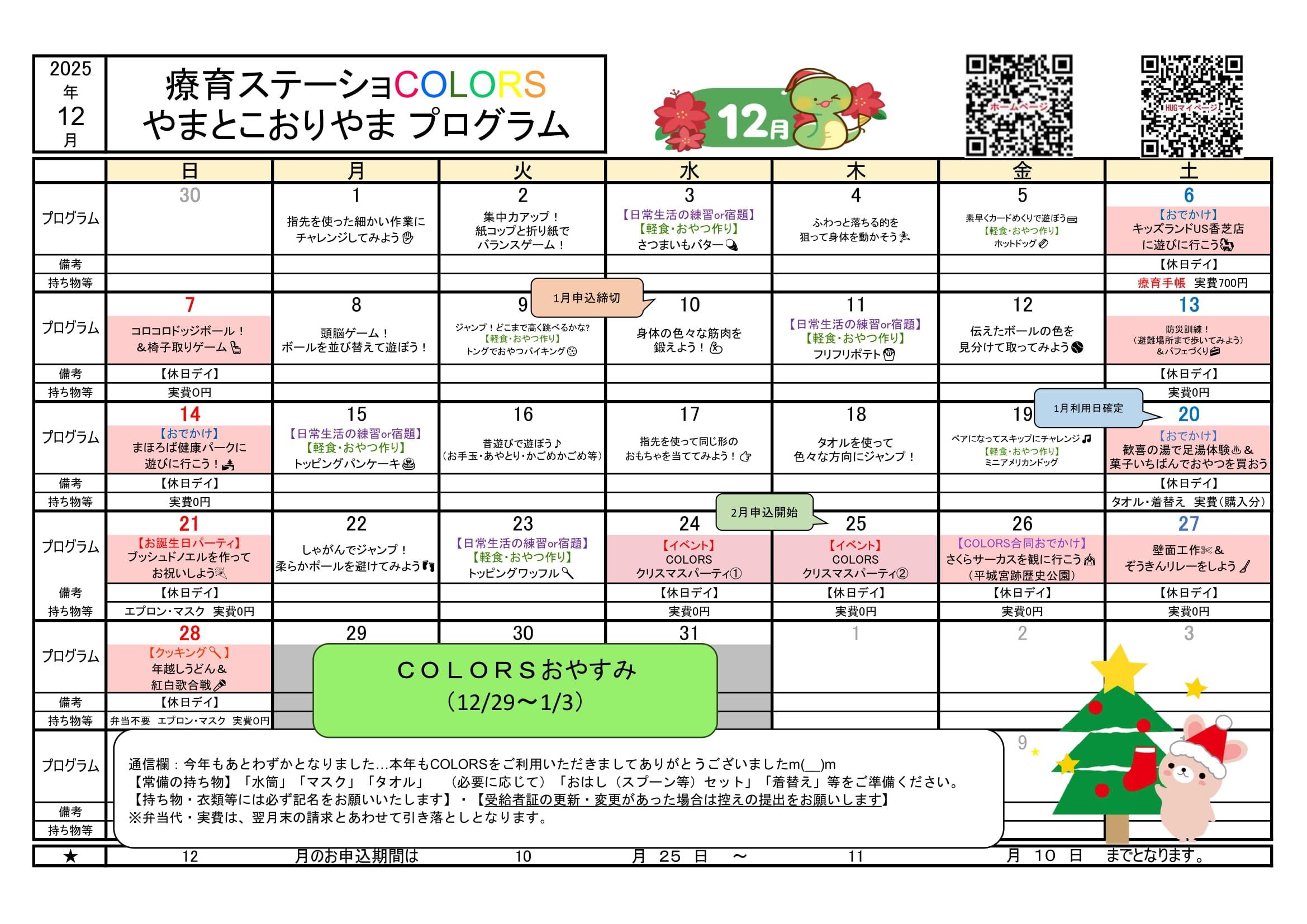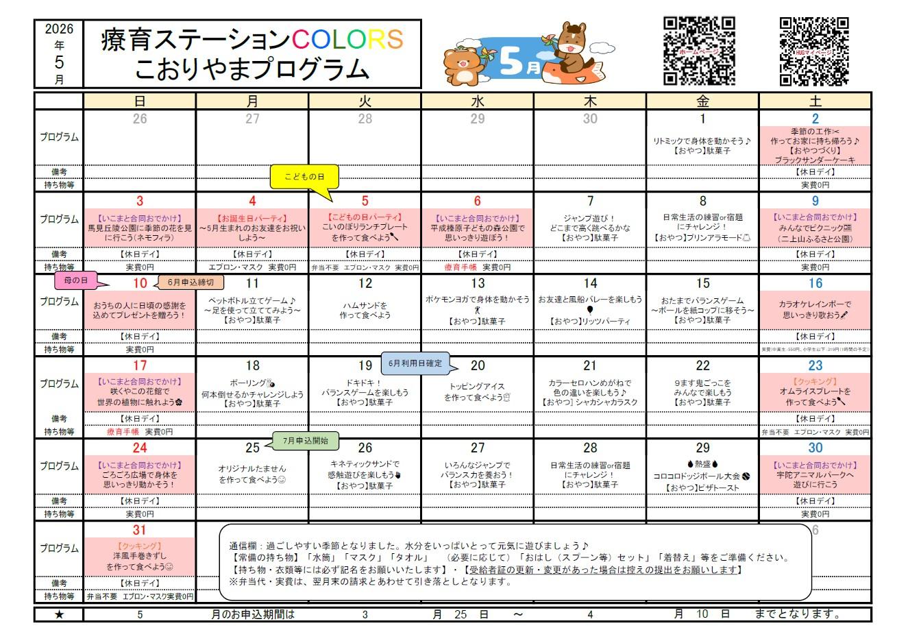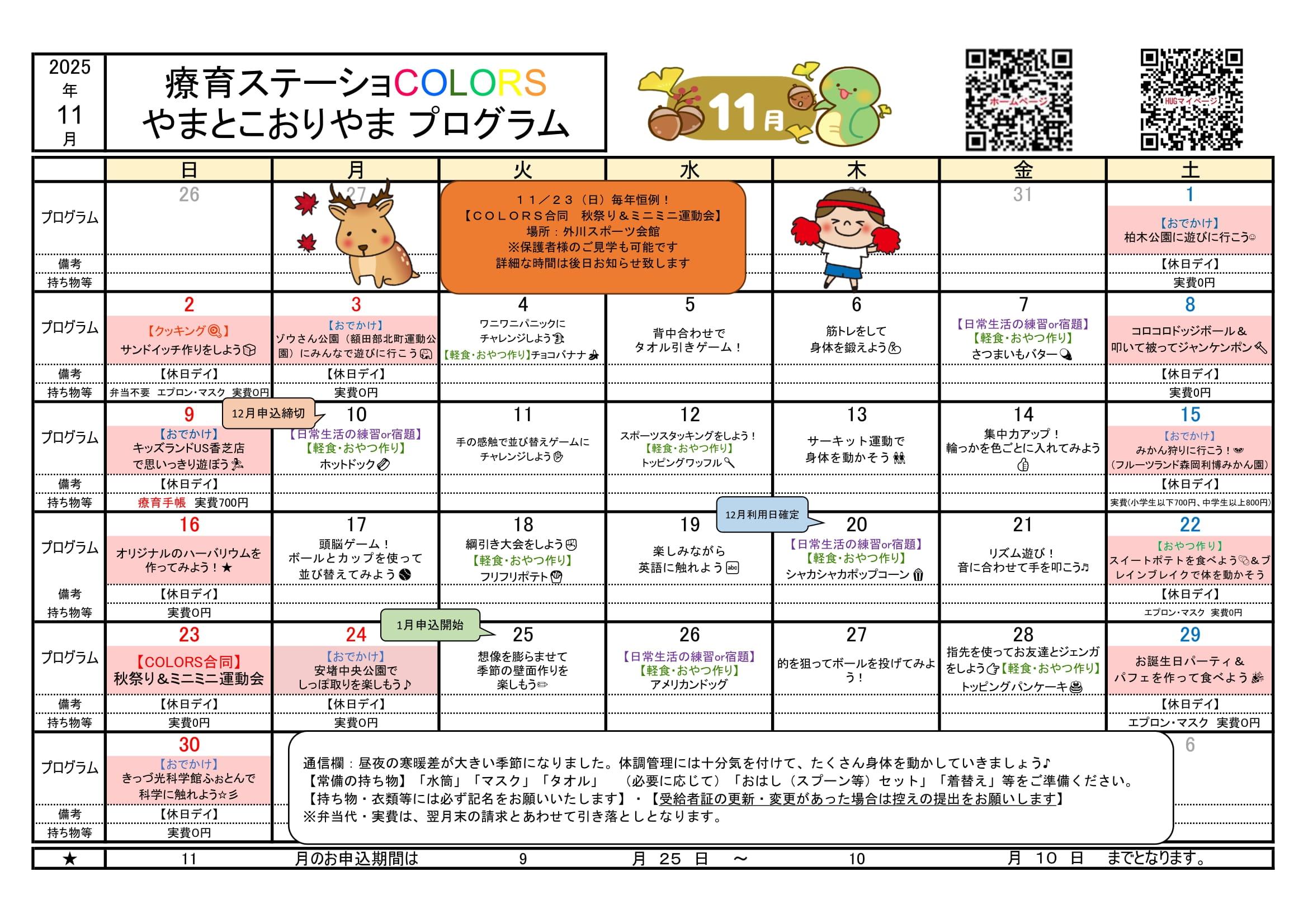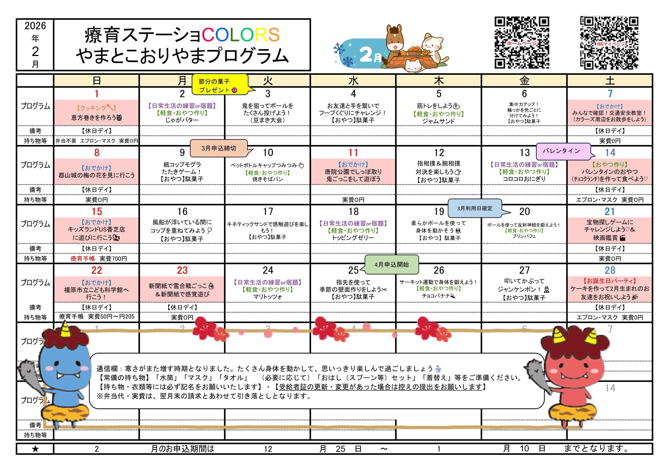 プログラム 集団や個人で楽しめる様々なプログラムを日替わりでおこなっています♪ |