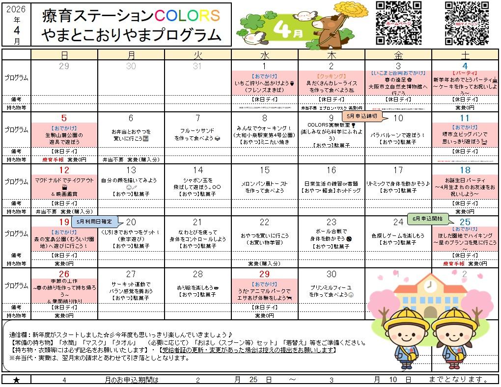 プログラム 外出やクッキングなど、一日を通して楽しめるようなプログラムを準備しています |